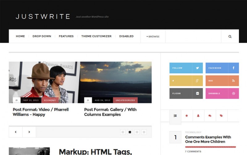 Тёмно серый Вордпресс шаблон для блога — JustWrite