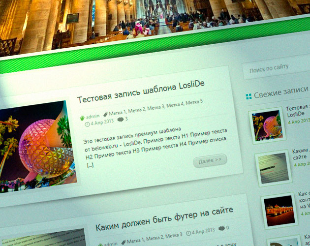 Это самый популярный из всех шаблонов для WordPress на блоге beloweb.ru. И самый первый адаптивный шаблон с Flat дизайном. Подробнее