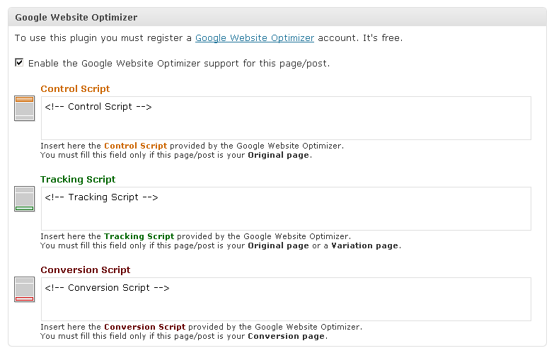 Этот плагин найдёт страницы на блоге с большим и низким показателем отказов. Вы с лёгкостью сможете вставить код Google Website Optimizer, который существенно поможет оптимизировать Ваши страницы.