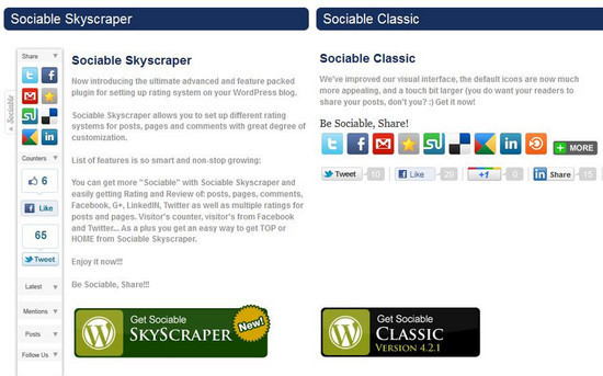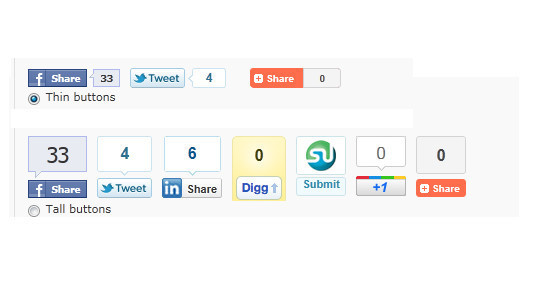 Очень удобный плагин, который добавляет к Вашим статьям знаменитые кнопки со счётчиками от Google +1, Facebook ReTweet от Твиттера, LinkedIn и Pin It. Так же здесь имеется не мало настроек, которые позволяют поставить данные кнопки как перед контентом так и после него.