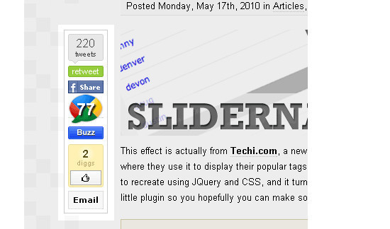 Очень популярный и функциональный плагин для блогов на WordPress. Этот плагин сможет вывести различные фиксированные блоки на Ваших страницах (слева и снизу) а так же добавить блок кнопок со счётчиками как в начале статьи так и в её конце.