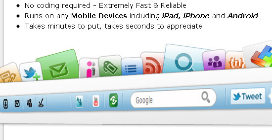 Очень классный плагин для Ваших блогов, который фиксирует внизу страницы большую вкладку с иконками закладок. Огромным плюсом является богатый функционал и настройка плагина, есть несколько вариантов оформления, а если они Вас не устраивают Вы сможете сами изменить цвет и шрифт вкладки.